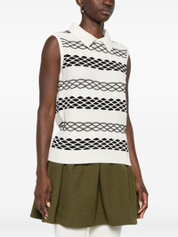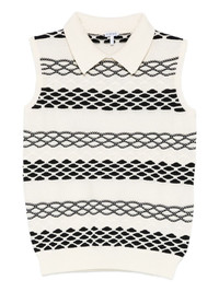 spread-collar pattern top Highlights - White - Spread collar - Sleeveless - Graphic pattern - Knitted construction - Cotton Made in Italy Composition Cotton 100% SIZE & FIT Model measurements Height 5 ft 10 in(1.77 m) Bust/Chest 32.28 in(82 cm) Hips 35.03 in(89 cm) Waist 25.19 in(64 cm) Washing instructions Read Manufacturer Guidelines