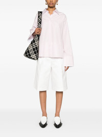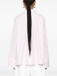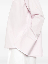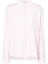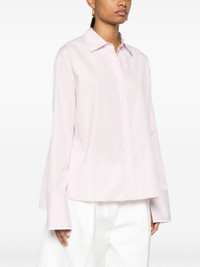 spread-collar poplin shirt Highlights - Light pink - Cotton-silk blend - Poplin texture - Signature embroidered anagram motif - Spread collar - Concealed front button fastening - Long sleeves - Split cuffs - Short side slits - High-low hem Made in Italy Composition Outer: Cotton 100%, Polyester 100% Lining: Cotton 58%, Silk 42% SIZE & FIT Model measurements Height 5 ft 10 in(1.78 m) Bust/Chest 32.67 in(83 cm) Hips 35.43 in(90 cm) Waist 23.22 in(59 cm) FittingInformation Designed to be unstructured, offering a loose fit throughout Made from a midweight non-stretch fabric This piece fits true to size – take your usual size Washing instructions Dry Clean Only
