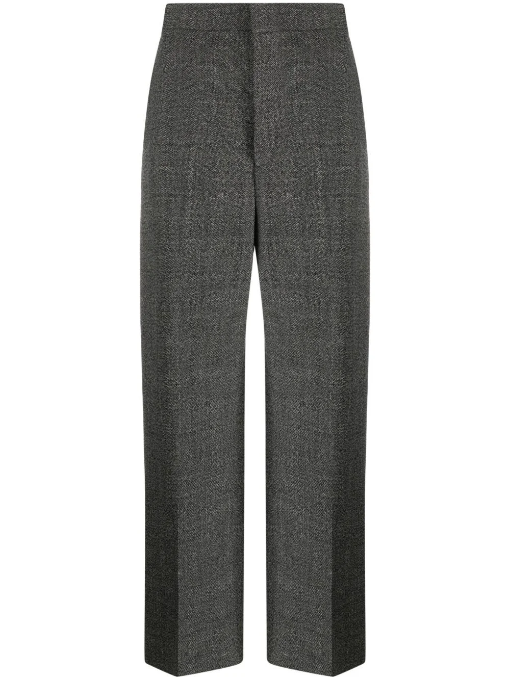 straight-leg wool tailored trousers Highlights - Smoky black - Wool - Twill weave - Melange effect - Pressed crease - High-waisted - Straight leg - Zip fly fastening - Two side slash pockets - Rear welt pocket Made in Italy Composition Outer: Wool 100% Lining: Cotton 100%, Polyester 100% SIZE & FIT Model measurements Height 5 ft 10 in(1.79 m) Bust/Chest 32.67 in(83 cm) Hips 34.25 in(87 cm) Waist 24.4 in(62 cm) FittingInformation Designed for a straight-leg fit, these trousers allow for a close fit at the waist and an unrestricted, comfortable fit over the leg Made from a midweight non-stretch fabric This piece fits true to size – take your usual size Washing instructions Dry Clean Only