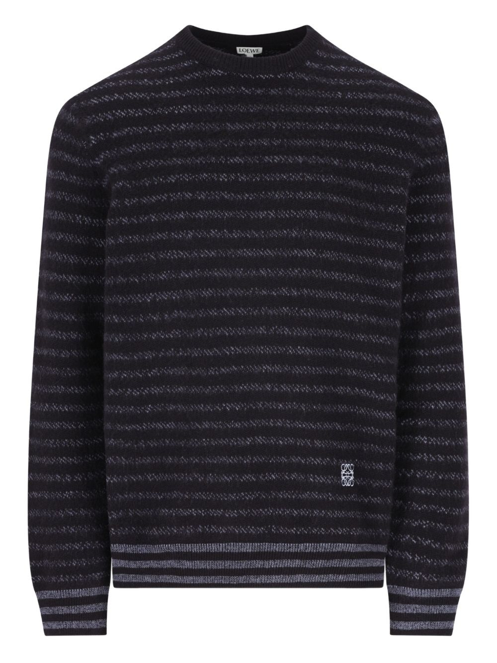 striped logo-embroidered sweater Highlights - Dark blue - Striped pattern - Logo embroidery - Ribbed cuffs - Ribbed hem - Crew neck Made in Italy Composition Wool 98%, Elastane 1%, Polyamide 1% Washing instructions Read Manufacturer Guidelines