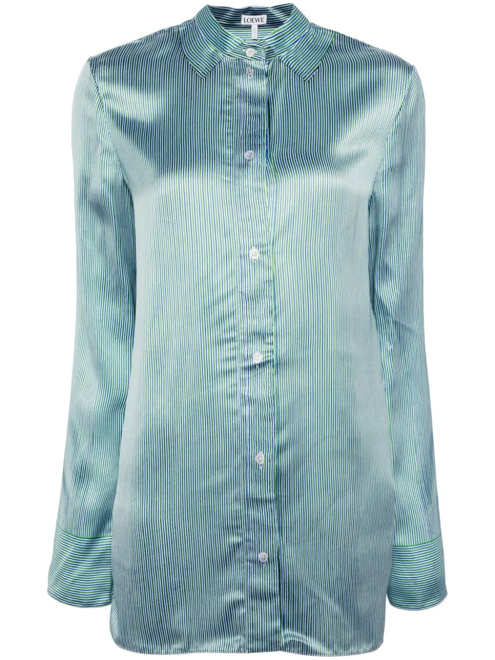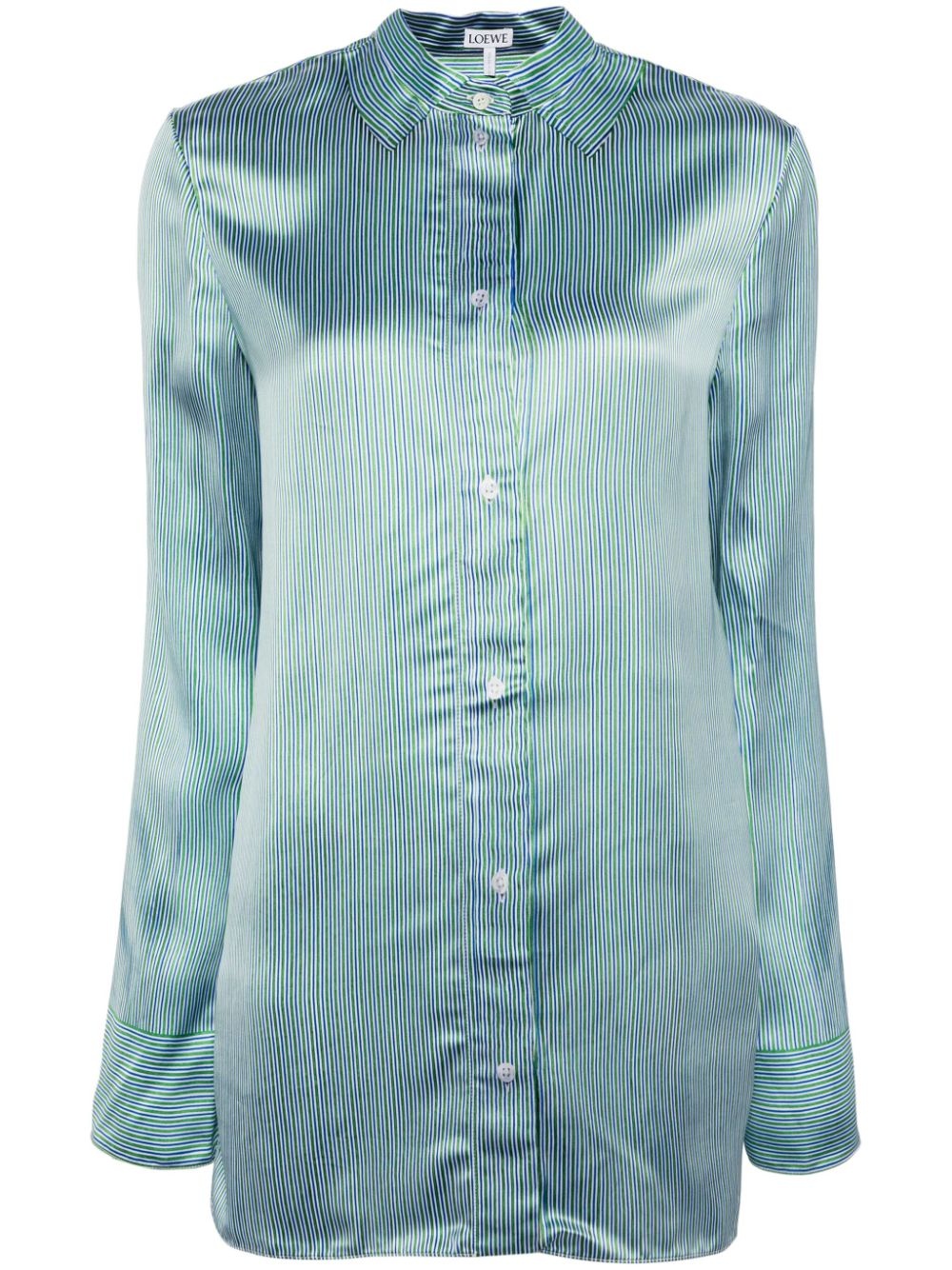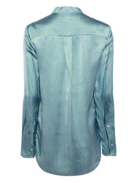 striped satin shirt Highlights - Green/blue/white - Satin finish - Vertical stripe print - Classic collar - Front button fastening - Long sleeves - Buttoned cuffs - Curved hem Made in Italy Composition Viscose 80%, Silk 20%