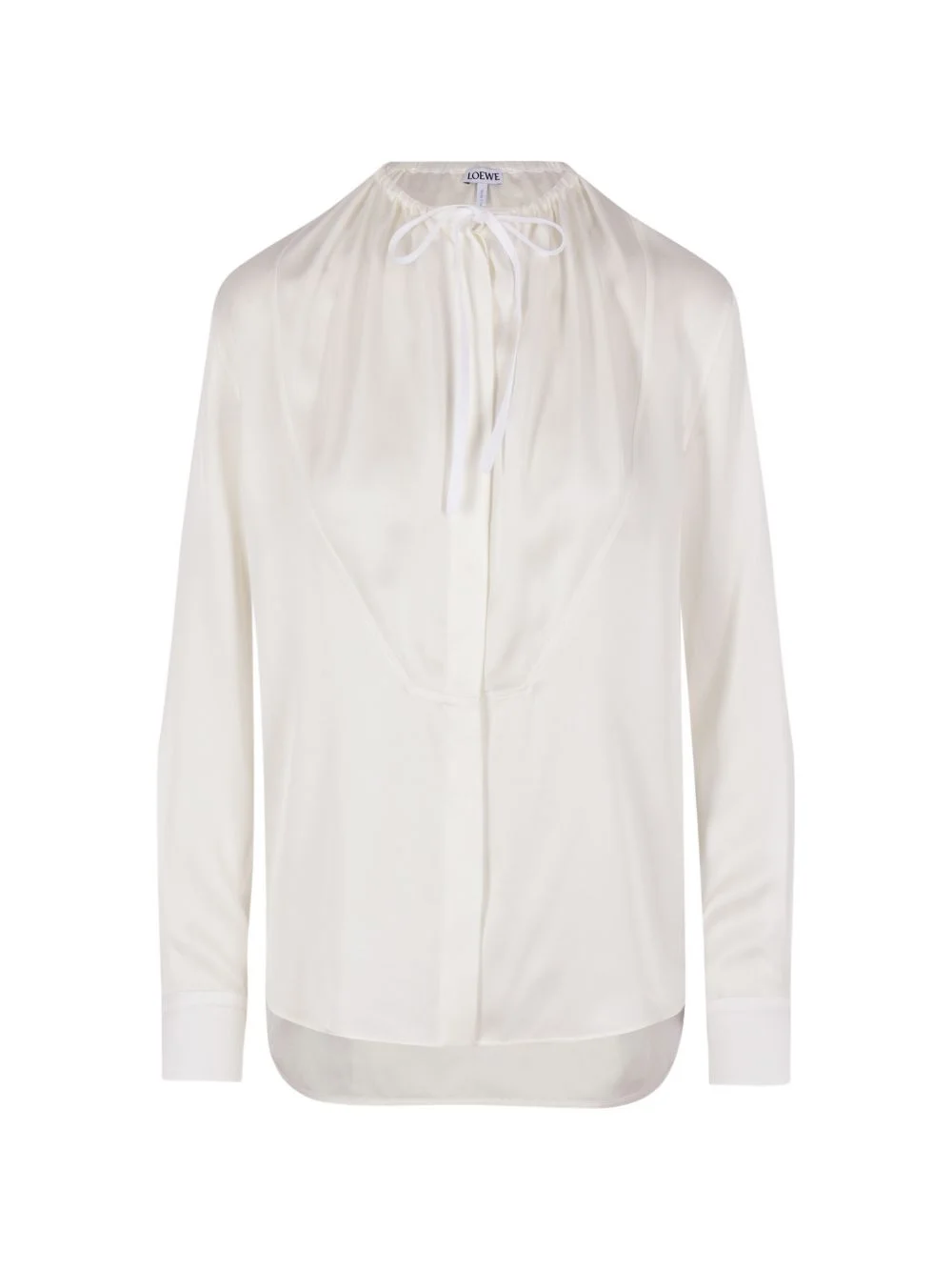 tie-neck shirt Highlights - White - Silk - Tie detail - Long sleeves - Buttoned cuffs - Tonal stitching - Straight hem Made in Italy Composition Silk 100% Washing instructions Read Manufacturer Guidelines
