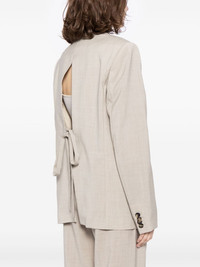 tied-back wool blazer Highlights - Beige - Wool - Notched lapels - Front button fastening - Long sleeves - Two side flap pockets - Open back - Rear tie fastening - Straight hem Made in Italy Composition Outer: Wool 100% Lining: Viscose 100% Washing instructions Dry Clean Only