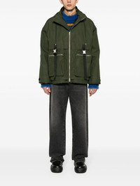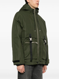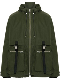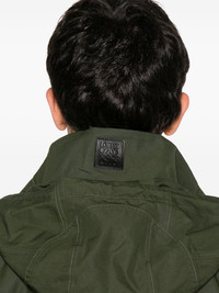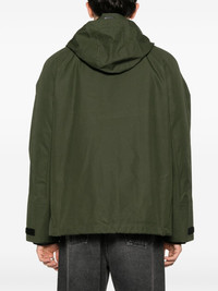 water-repellent hooded parka Highlights - Olive green - Layered design - Water-repellent - Drawstring hood - Long sleeves with touch-strap cuffs - Storm flap with logo-engraved buckle detail - Two side zip-fastening pockets - Removable lining - Rear signature embossed anagram motif patch - Internal drawstring fastening waist - Front two-way zip fastening Made in Italy Composition Outer: Polyamide 100%, Cotton 100% Lining: Polyester 100% SIZE & FIT Model measurements Height 6 ft 2 in(1.87 m) Bust/Chest 36.41 in(92.5 cm) Hips 35.43 in(90 cm) Waist 29.52 in(75 cm) FittingInformation Designed to be unstructured, offering a loose fit throughout The detachable panel offers the preference for a different fit Made from a midweight non-stretch fabric This piece fits true to size – take your usual size Washing instructions Dry Clean Only