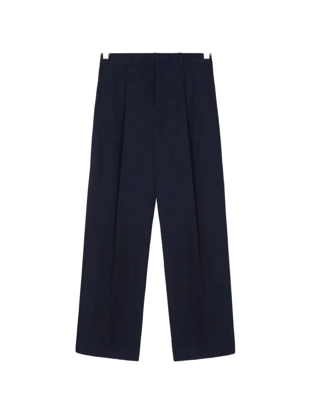 wide-leg trousers Highlights - Dark navy - Wide leg - Belt loops - Back patch - Pleats - Button fastening Made in Italy Composition Cotton 95%, Calf Leather 5% Washing instructions Read Manufacturer Guidelines