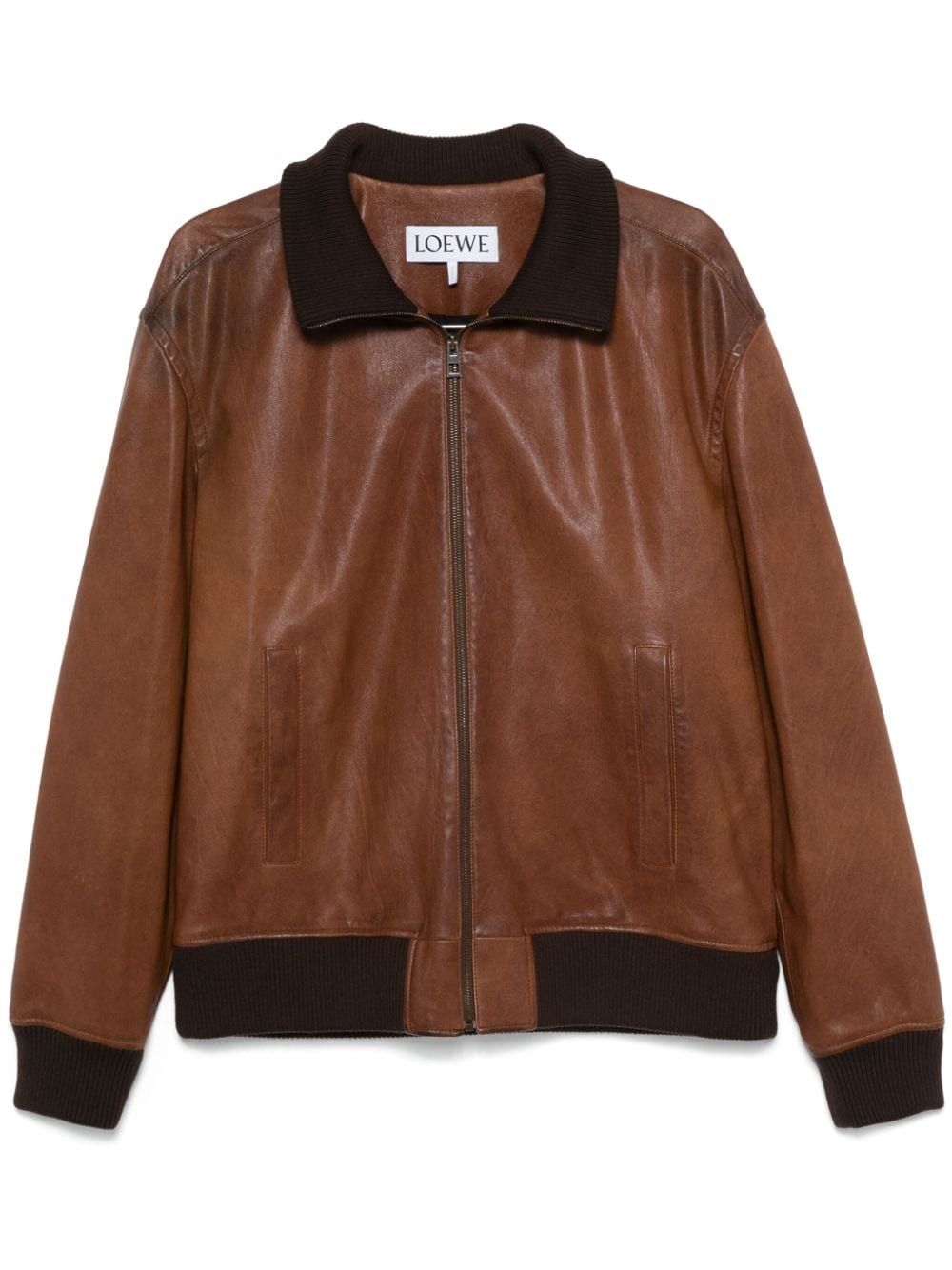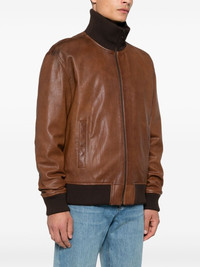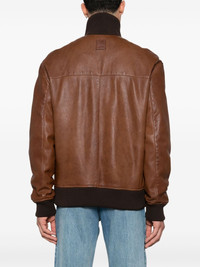zip-up leather jacket Highlights - Brown - Lambskin - Smooth grain - Front zip fastening - Ribbed trim - Stand-up collar - Drop shoulder - Long sleeves - Two press-stud fastening side pockets - Logo patch to the rear - Internal welt pocket - Full lining - Straight hem Made in Italy Composition Outer: Lambskin 100%, Wool 45%, Acrylic 44%, Polyamide 10%, Elastane 1% Lining: Cotton 100%, Viscose 100% SIZE & FIT Model measurements Height 6 ft 1 in(1.85 m) Bust/Chest 35.82 in(91 cm) Hips 37.79 in(96 cm) Waist 29.13 in(74 cm) FittingInformation Designed for a regular fit, allowing for a comfortably loose fit throughout the body The ribbed hem offers a close, comfortable fit Soft leather has a supple and smooth construction offering some flexibility