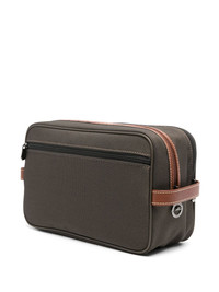Boxford makeup bag Highlights - Dark green - Canvas - Leather trim - Contrast stitching - Logo patch to the front - Flat side handles - Partitioned compartment - Internal patch pocket - Branded zip puller - Top zip fastening Imported Composition Outer: Polyamide 100% SIZE & FIT Measurement DEPTH 4.33 in(11 cm) HANDLE 0.39 in(1 cm) HEIGHT 6.69 in(17 cm) WIDTH 10.62 in(27 cm)