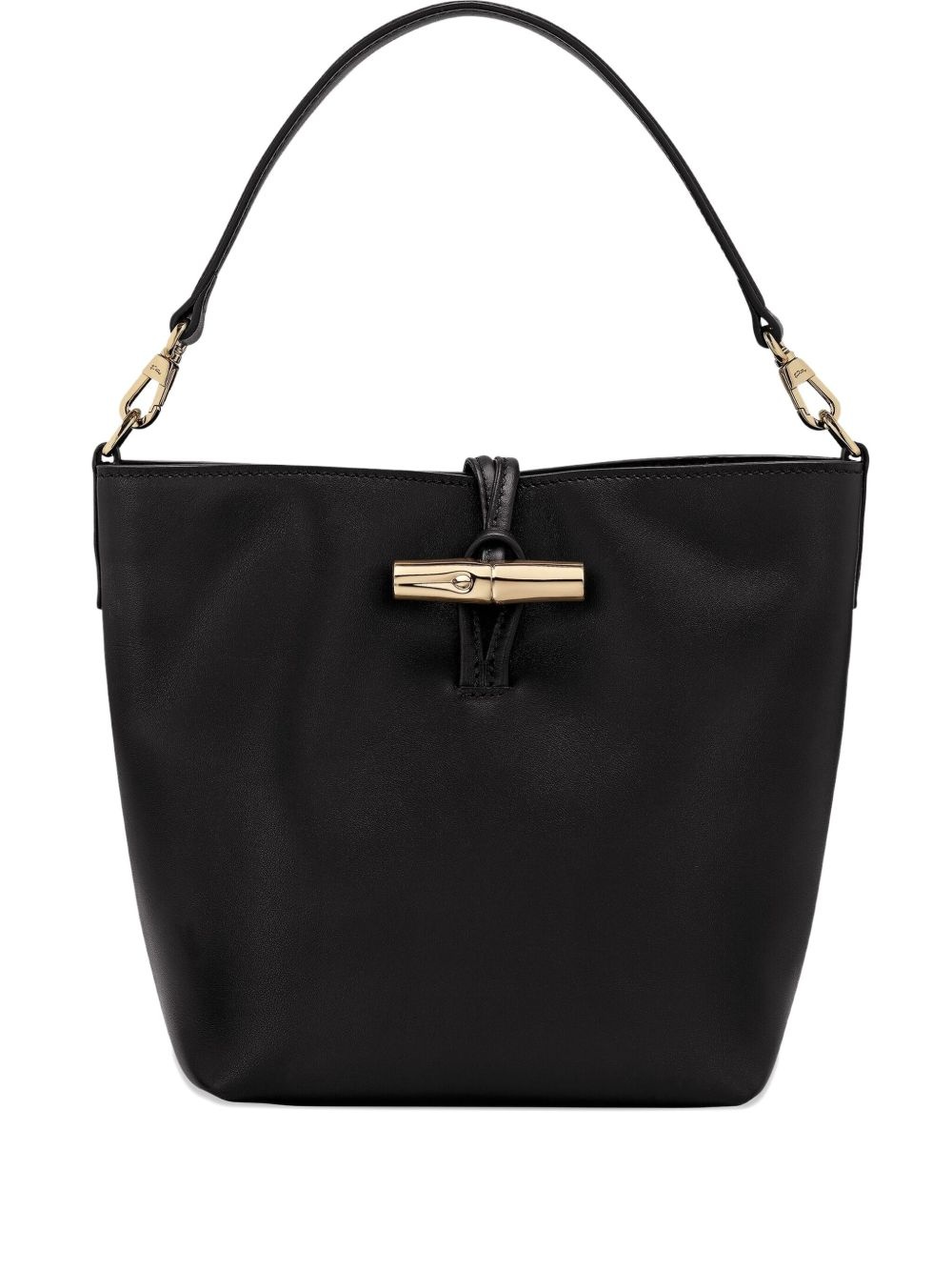 extra small Le Roseau bucket bag Highlights - Black - T-bar fastening - Detachable shoulder strap - Flat top handle Made in France Composition Calf Leather 100% SIZE & FIT Measurement DEPTH 4.33 in(11 cm) HEIGHT 8.26 in(21 cm) WIDTH 6.69 in(17 cm)