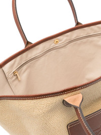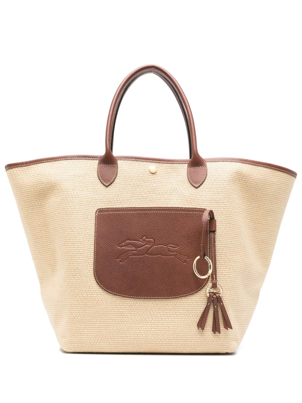 large Le Pliage Collection Basket tote bag Highlights - Beige - Basket weave - Press-stud fastening - Two rolled top handles - Leather trim - Debossed logo to the front - Front patch pocket - Ring hardware detailing - Logo charm - Main compartment - Internal zip-fastening pocket - Full lining Made in France Composition Outer: Fabric 100%, Calf Leather 100% SIZE & FIT Model measurements Height 5 ft 9 in(1.75 m) Bust/Chest 31.88 in(81 cm) Hips 34.64 in(88 cm) Waist 24.01 in(61 cm) Measurement DEPTH 7.87 in(20 cm) HEIGHT 12.99 in(33 cm) STRAP 6.29 in(16 cm) WIDTH 11.81 in(30 cm)