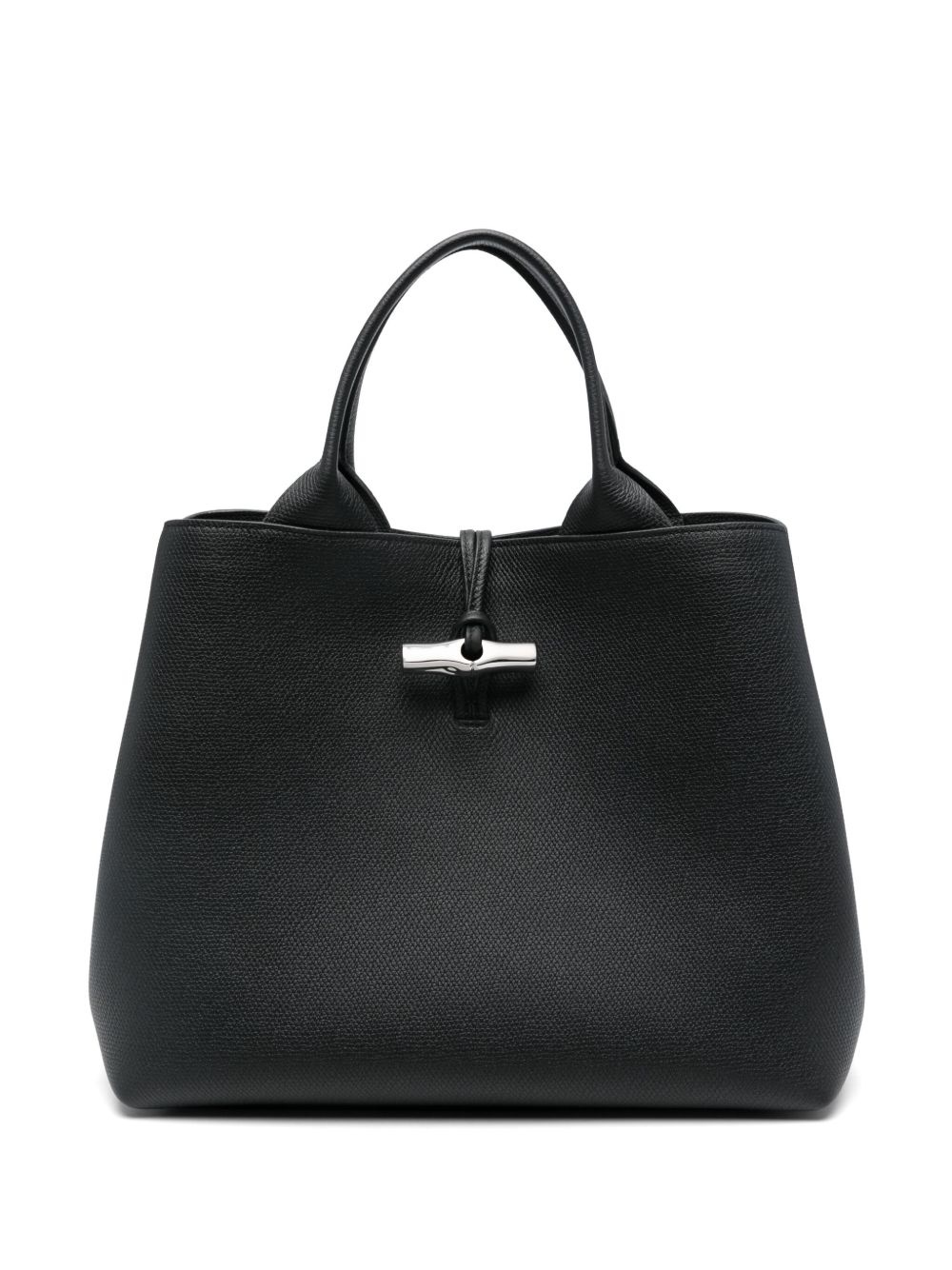 large Le Roseau tote bag Highlights - Black - Calf leather - Pebbled texture - Front toggle fastening - Side press-stud fastening - Two top handles - Main compartment - Internal zip-fastening pocket - Internal patch pocket - Internal card slots - Debossed internal logo - Logo-jacquard lining Imported Composition Outer: Calf Leather 100% SIZE & FIT Measurement DEPTH 4.72 in(12 cm) HANDLE 5.11 in(13 cm) HEIGHT 11.02 in(28 cm) WIDTH 13.77 in(35 cm)