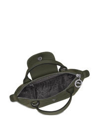 Le Pliage mini bag Highlights - Olive green - Two top handles - Detachable shoulder strap - Top zip front fastening - Foldover top - Main compartment - Engraved logo Made in France Composition Outer: Leather 100% SIZE & FIT Measurement DEPTH 3.93 in(10 cm) HEIGHT 5.51 in(14 cm) WIDTH 6.69 in(17 cm)