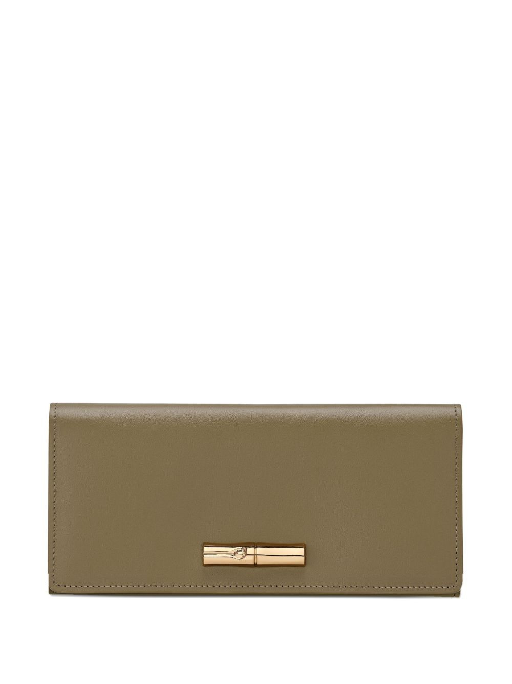 Le Roseau bamboo-clasp leather wallet Highlights - Olive green - Calf leather - Bamboo clasp - Flap closure - Multiple card slots Made in France Composition Lining: Recycled Polyester 100% Outer: CALFSKIN 100% SIZE & FIT Measurement LENGTH 7.67 in(19.5 cm) WIDTH 3.54 in(9 cm)