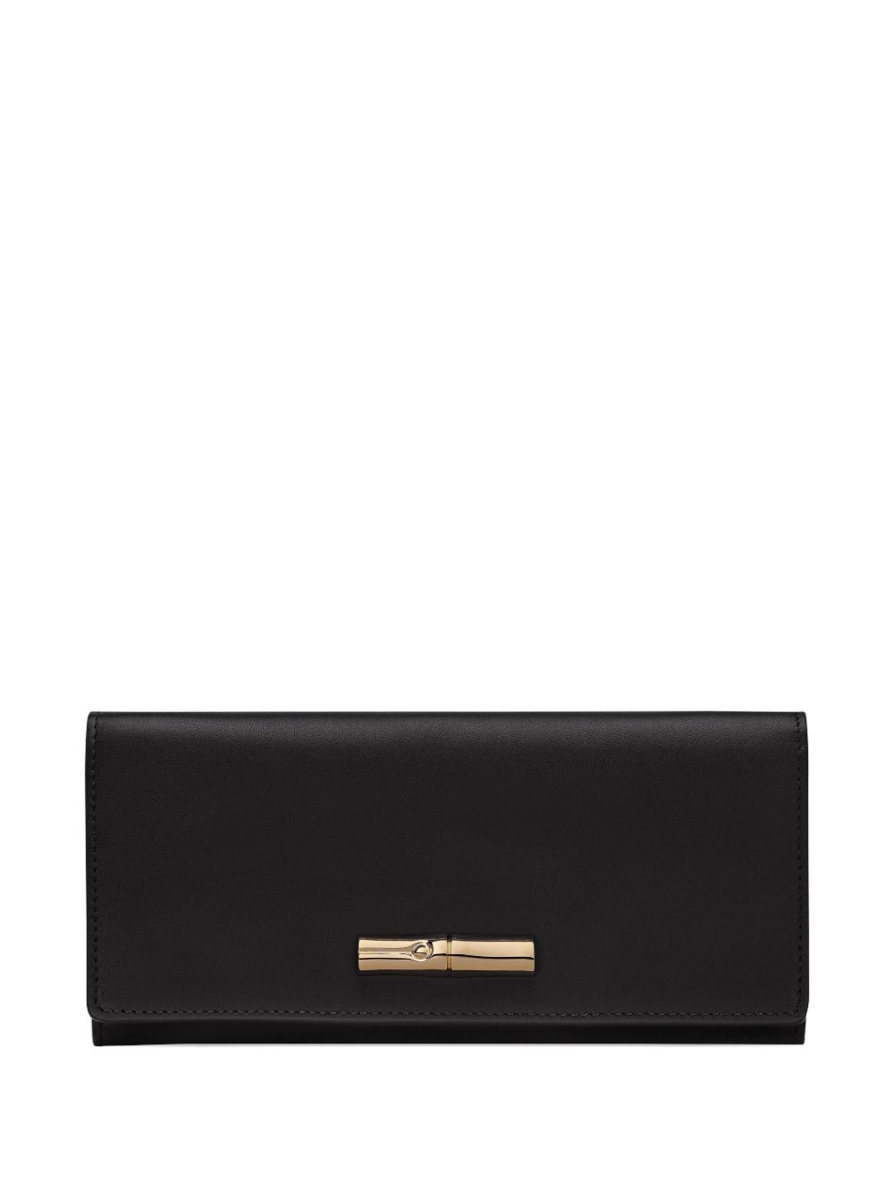 Le Roseau long continental wallet Highlights - Black - Calf leather - Multiple card-slots - Three interior slip-pockets - Gold-toned bamboo clasp Made in France Composition Lining: Recycled Polyester 100% Outer: Calf Leather 100% SIZE & FIT Measurement HEIGHT 3.54 in(9 cm) LENGTH 7.67 in(19.5 cm)