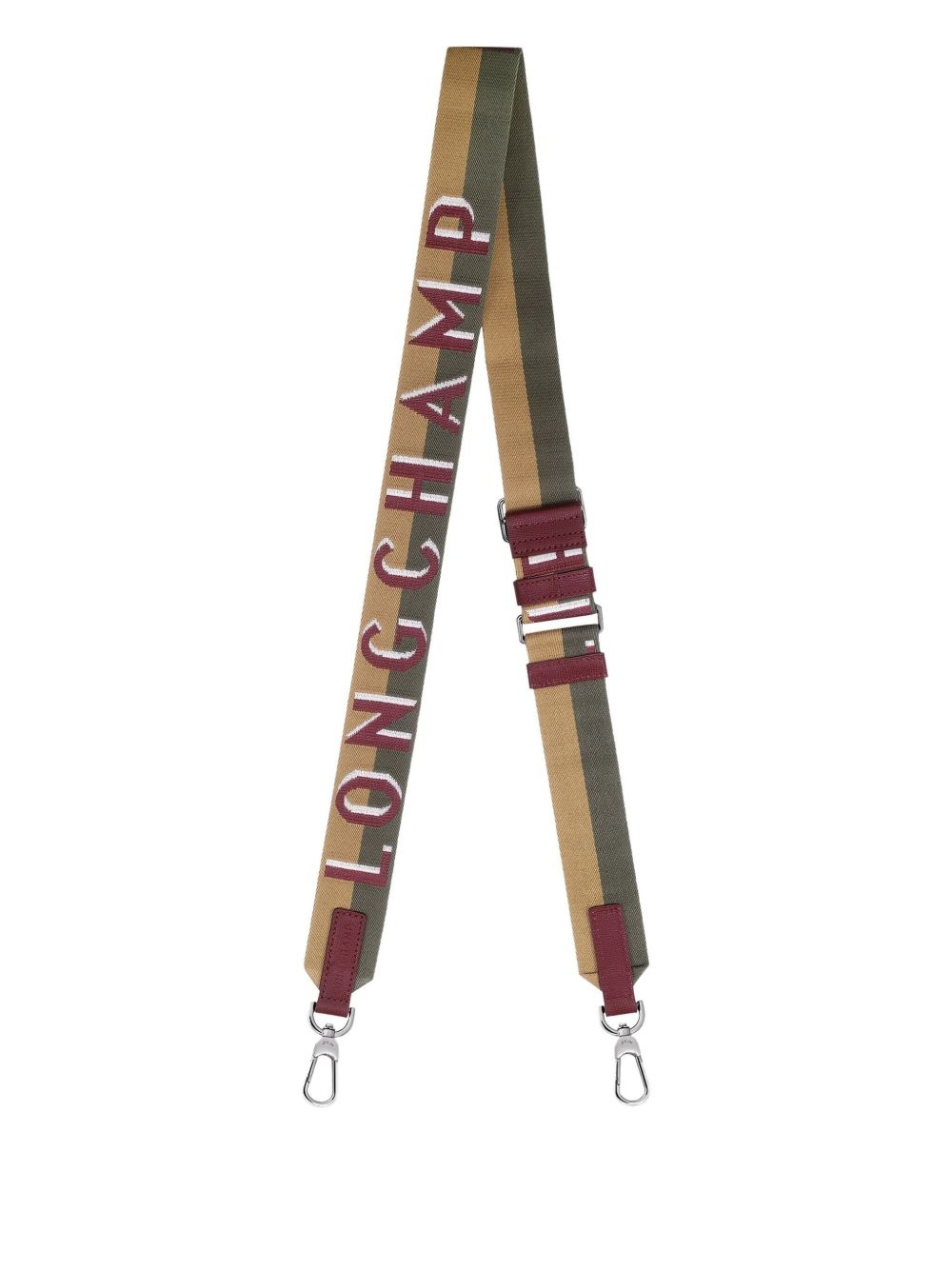 logo-jacquard canvas shoulder strap Highlights - Khaki green - Embroidered logo detailing - Adjustable length - Silver-tone clips - Contrasting accents Made in France Composition Polyamide 100% SIZE & FIT Measurement STRAP 29.13 in(74 cm)