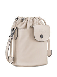 mini Le Pliage Xtra bucket bag Highlights - Beige - Drawstring closure - Front flap pocket - Embossed logo detail - Adjustable shoulder strap Made in France Composition Outer: Leather 100% SIZE & FIT Measurement DEPTH 4.72 in(12 cm) HEIGHT 7.48 in(19 cm) WIDTH 5.31 in(13.5 cm)