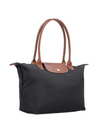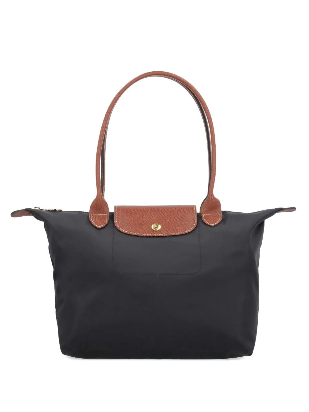 medium Le Pliage Original tote bag Highlights - Black/brown - Recycled polyamide - Canvas - Two long top handles - Foldover top with press-stud fastening - Debossed logo to the front - Top zip fastening - Gold-tone hardware - Main compartment Made in France Composition Outer: Recycled Polyamide 100%, Calf Leather 100% SIZE & FIT Measurement DEPTH 6.1 in(15.5 cm) HEIGHT 10.43 in(26.5 cm) WIDTH 11.02 in(28 cm) Washing instructions Read Manufacturer Guidelines