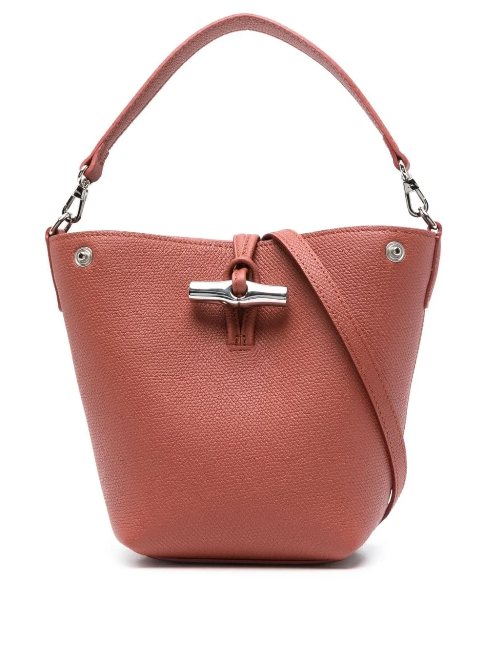 small Le Roseau bucket bag Highlights - Brick red - Calf leather - Grained texture - Single detachable top handle - Adjustable detachable shoulder strap - Main compartment - Internal slip pocket - Internal patch pocket - Logo-jacquard lining - Silver-tone hardware - Toggle fastening - This piece comes complete with a protective dust bag. Made in France Composition Outer: Calf Leather 100%