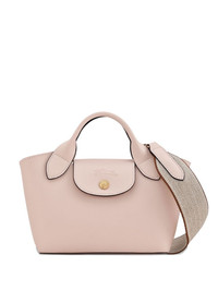top-handle leather mini bag Highlights - Petal pink - Calfskin leather - Top handle - Removable strap - Debossed logo - Button fastening Made in France Composition Outer: Calf Leather 100% SIZE & FIT Measurement DEPTH 2.95 in(7.5 cm) HEIGHT 5.9 in(15 cm) STRAP 25.59 in(65 cm) WIDTH 7.48 in(19 cm)