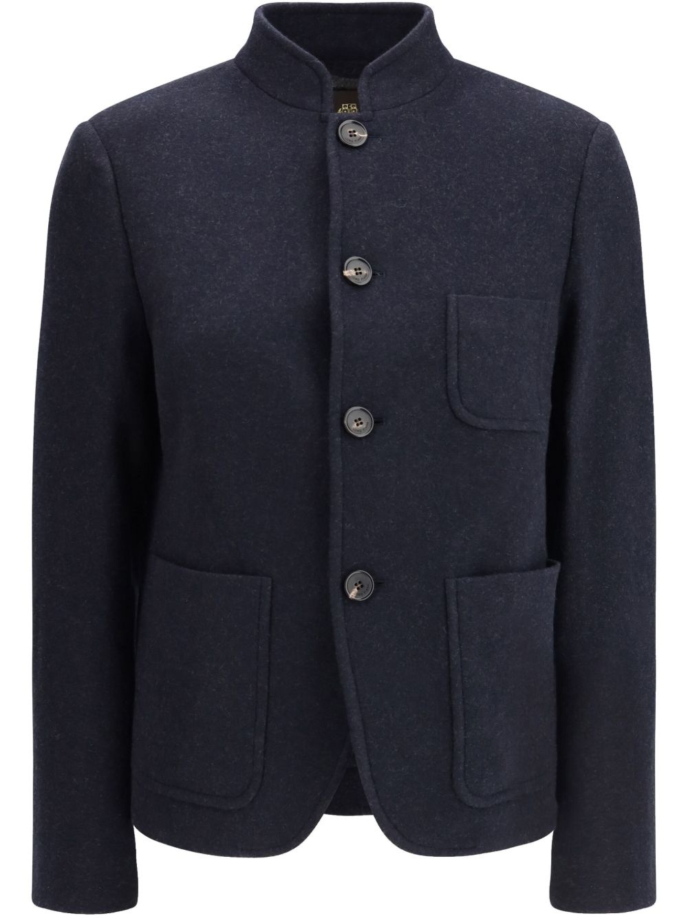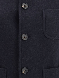 cashmere jacket Highlights - Navy blue - Front button fastening - Three front patch pockets - Stand-up collar - Long sleeves Made in Italy Composition Cattle Horn 100%, Cashmere 100%, Suede 100%