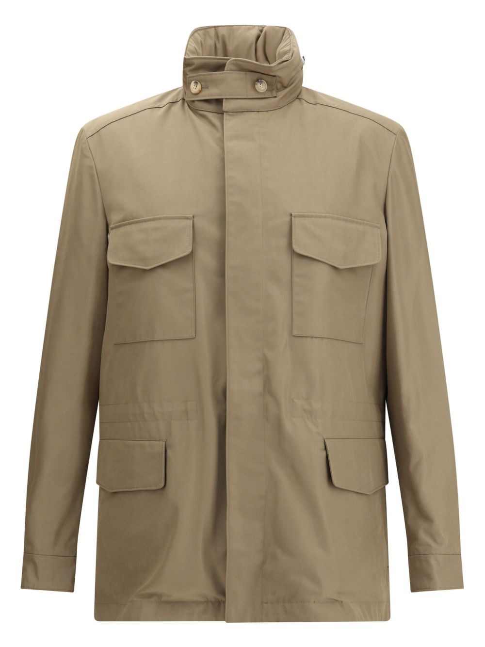 flap pockets removable vest jacket Highlights - Light brown - High collar - Double-slider zip closure - Snap-button placket - Four flap welt pockets - Removable sleeve - Adjustable cuffs Made in Italy Composition Polyester 100%