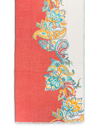 floral-print scarf Highlights - Coral red - Rectangle shape - Frayed edge Made in Italy Composition Cashmere 70%, Silk 30%