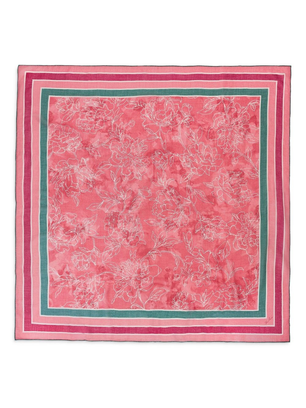 floral-print scarf Highlights - Coral pink - Square shape - Striped border Made in Italy Composition Cashmere 70%, Silk 30%