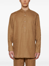 Jeri linen shirt Highlights - Camel brown - Linen/flax - Band collar - Front button placket - Long sleeves - Buttoned cuffs - Straight hem Imported Composition Linen/Flax 100% SIZE & FIT FittingInformation Designed to be unstructured, offering a loose fit throughout Made from a midweight non-stretch fabric This piece fits true to size – take your usual size