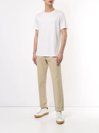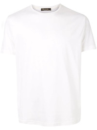 plain crew-neck T-shirt White silk and cotton blend plain crew-neck T-shirt from Loro Piana featuring a crew neck, short sleeves and a straight hem. Made in Italy Composition Outer: Silk 100% SIZE & FIT Model measurements Height 6 ft 0 in(1.84 m) Bust/Chest 35.43 in(90 cm) Hips 35.82 in(91 cm) Waist 28.74 in(73 cm) FittingInformation This piece fits true to size. We recommend you get your regular size Cut for a relaxed fit Made with a lightweight fabric Washing instructions Hand Wash