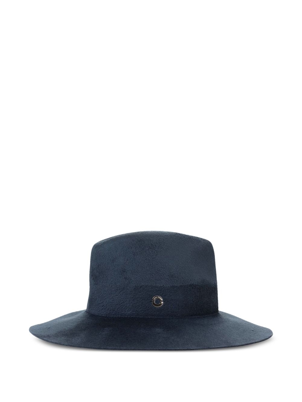 wide-brim fedora hat Highlights - Navy blue - Wide brim - Concave crown - Silver-tone logo plaque Imported Composition Cotton 100%