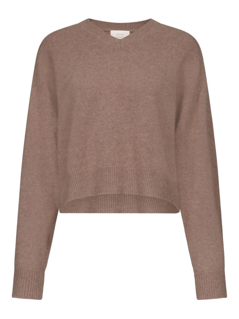 ANZOR LDS V-neck ribbed-detail sweater Highlights - Taupe - V-neck - Drop shoulders - Ribbed neckline - Ribbed cuffs - Ribbed hem - Cashmere Imported Composition Cashmere 100% Washing instructions Read Manufacturer Guidelines