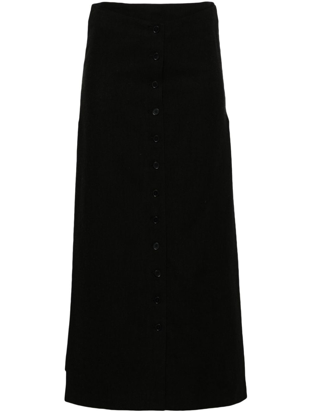 Atriblack buttoned skirt Highlights - Black - Cotton blend - Twill weave - Distressed effect - High-rise - Concealed side fastening - Front button fastening panel detailing - Central rear vent - Straight calf-length hem Imported Composition Outer: Cotton 55%, Viscose 26%, Linen/Flax 12%, Silk 7% Lining: Viscose 100% Washing instructions Hand Wash