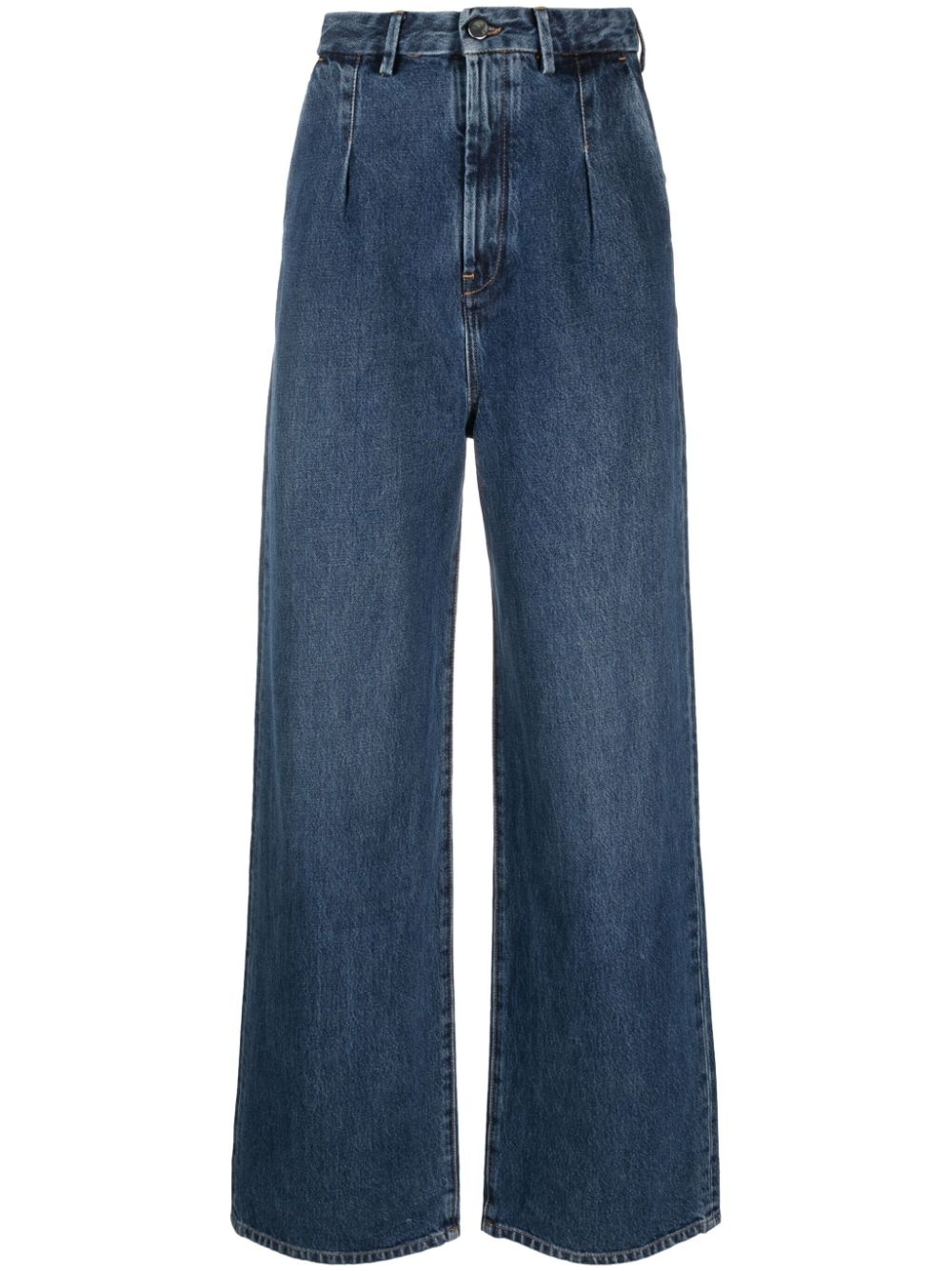 Attu high-rise wide-cut jeans Highlights - Indigo blue - Organic cotton - Washed denim - Belt loops - Pleat detailing - Logo patch to the rear - High-waisted - Wide leg - Button fly fastening - Two side slit pockets - Two rear welt pockets - Full-length Made in Italy Composition Organic Cotton 100% SIZE & FIT Model measurements Height 5 ft 10 in(1.78 m) Bust/Chest 31.49 in(80 cm) Hips 36.22 in(92 cm) Waist 25.59 in(65 cm) FittingInformation Designed with a wide leg cut, these jeans allow for a close fit at the waist and offer a loose and roomy fit over the leg Sturdy and hard-wearing, this denim piece offers no stretch This piece fits true to size – take your usual size Washing instructions Machine Wash