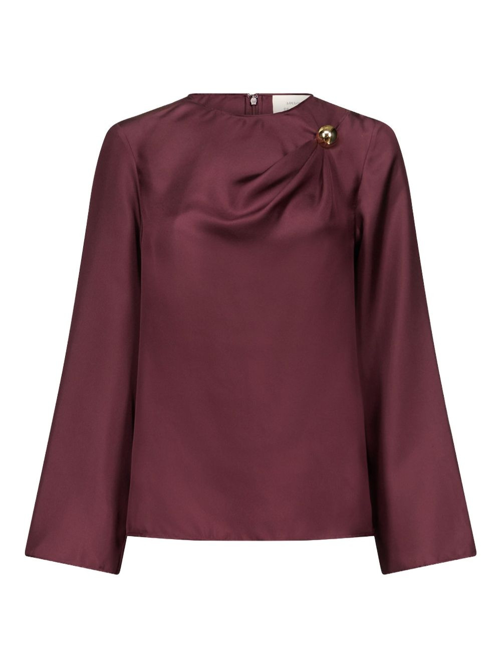 Azae draped brooch-detail blouse Highlights - Dark red - Draped neckline - Long sleeves - Gold-tone brooch detail - Satin fabric Imported Composition Silk 100% Washing instructions Read Manufacturer Guidelines