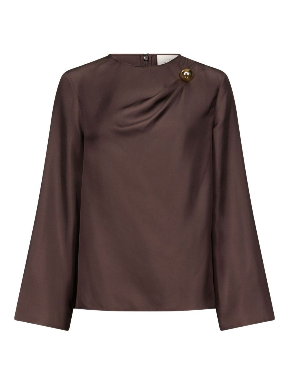 Azae draped top Highlights - Brown - Silk twill - Draped neckline - Metallic ornament - Crew neck - Flared sleeves Imported Composition Silk 100% Washing instructions Read Manufacturer Guidelines