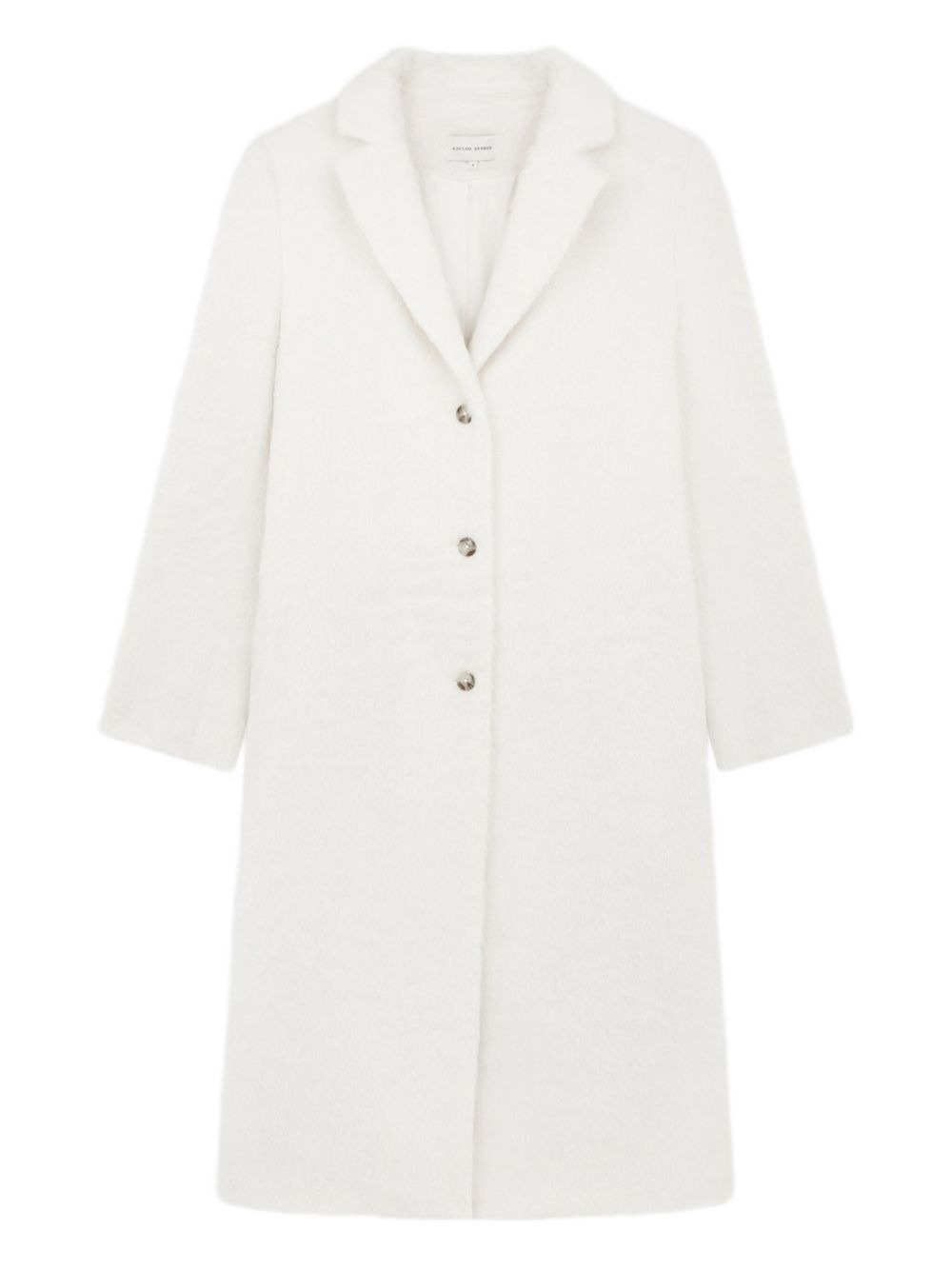 button-fastening alpaca wool-blend coat Highlights - White - Alpaca-wool blend - Notched lapel - Long sleeves - Button front fastening - Straight hemline Imported Composition Outer: Alpaca 65%, Wool 35% Lining: Polyester 100% Washing instructions Read Manufacturer Guidelines