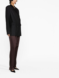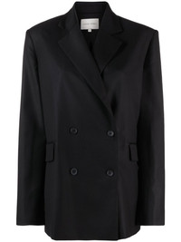 DONAU-BLACK Loulou Studio takes a classic tailored approach with this black-hued blazer: crafted from wool, it is characterised by its timeless double-breasted silhouette. Highlights - Black - Wool - Wide notch lapels - Double-breasted button fastening - Long sleeves - Buttoned cuffs - Front flap pockets - Straight hem Imported Composition Lining: Viscose 100% Outer: Wool 100% SIZE & FIT Model measurements Height 5 ft 10 in(1.78 m) Bust/Chest 29.92 in(76 cm) Hips 34.64 in(88 cm) Waist 23.62 in(60 cm) Measurement BUST 41.73 in(106 cm) SLEEVE LENGTH 24.8 in(63 cm) Shoulder Width 18.11 in(46 cm) FittingInformation This piece fits true to size. We recommend you get your regular size Cut for a loose fit Made with a mid-weight non-stretch fabric