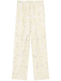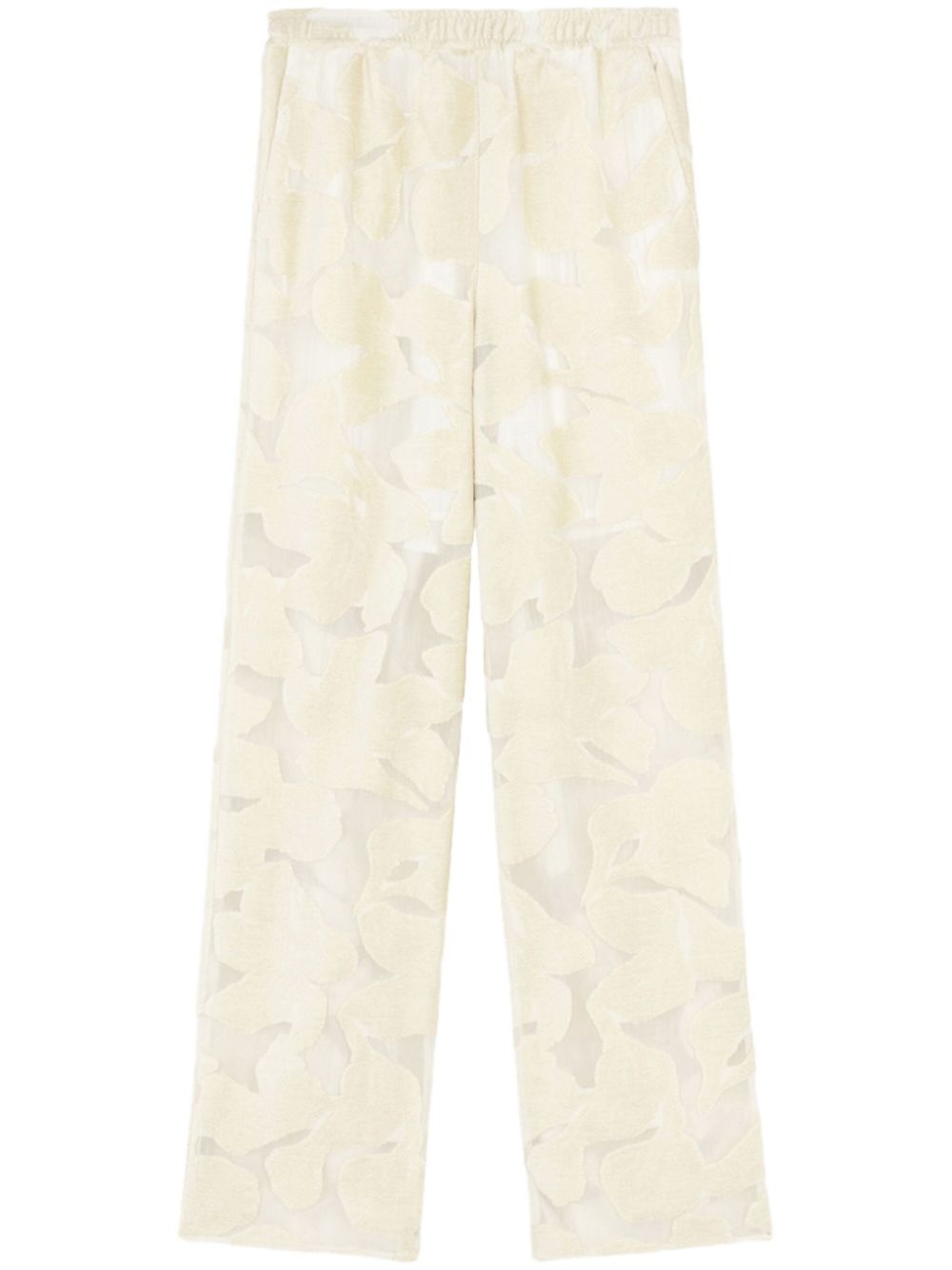 floral-patterned palazzo Highlights - White - Floral print - High-waisted - Elasticated waistband - Two side slit pockets - Wide leg Made in Italy Composition Viscose 84%, Polyamide 16%
