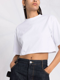 GUPO cropped short-sleeve T-shirt Loulou Studio adds a premium twist to the classic cropped T-shirt silhouette in this GUPO short-sleeve T-shirt. Crafted from superior Pima cotton, the piece is designed in a clean white hue to soften the style. Imported Composition Pima Cotton 100% SIZE & FIT Model measurements Height 5 ft 9 in(1.76 m) Bust/Chest 34.25 in(87 cm) Hips 36.22 in(92 cm) Waist 25.19 in(64 cm) Measurement BUST 37.79 in(96 cm) LENGTH 16.14 in(41 cm) SLEEVE LENGTH 9.05 in(23 cm) Shoulder Width 19.29 in(49 cm) FittingInformation This piece fits true to size. We recommend you get your regular size Cut for a relaxed fit Made with a mid-weight fabric Washing instructions Machine Wash
