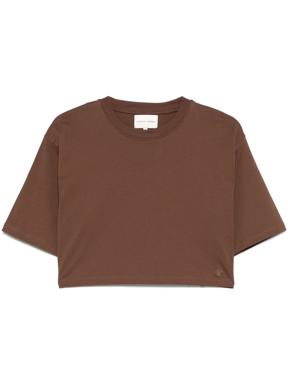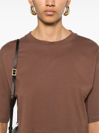 Gupo T-shirt Highlights - Earth brown - Embroidered logo to the front - Crew neck - Cropped Imported Composition Pima Cotton 100% SIZE & FIT Model measurements Height 5 ft 10 in(1.77 m) Bust/Chest 31.88 in(81 cm) Hips 36.22 in(92 cm) Waist 24.01 in(61 cm) FittingInformation Designed to be unstructured, offering a loose fit throughout Made from a midweight non-stretch fabric, this piece offers minimal elasticity when worn