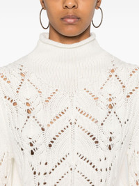 Gustavia sweater Highlights - White - Merino wool-cashmere blend - Open knit - Ribbed knit - Cable knit - Ribbed trim - High neck - Long bell sleeves - Straight hem Imported Composition Merino 90%, Cashmere 10% SIZE & FIT Model measurements Height 5 ft 10 in(1.77 m) Bust/Chest 33.07 in(84 cm) Hips 37 in(94 cm) Waist 24.8 in(63 cm) FittingInformation Designed for a relaxed fit, this piece allows for comfort and movement when worn Made with a midweight knit, this piece offers some stretch