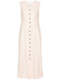 Idika maxi dress Highlights - Light pink - Virgin wool - V-neck - Sleeveless - Dart detailing - Two front welt pockets - Adjustable strap to the rear - Straight hem - Unlined - Front button fastening Imported Composition Outer: Virgin Wool 100% Lining: Viscose 100% SIZE & FIT Model measurements Height 5 ft 10 in(1.78 m) Bust/Chest 33.07 in(84 cm) Hips 36.61 in(93 cm) Waist 24.8 in(63 cm) FittingInformation Designed for a slim fit that sits just away from the body offering a close yet comfortable fit Made from a midweight non-stretch fabric This piece fits true to size – take your usual size