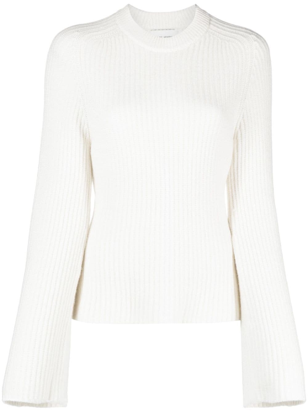 Kota cashmere jumper Highlights - Ivory white - Cashmere - Ribbed knit - Crew neck - Long sleeves - Bell sleeves - Straight hem Imported Composition Cashmere 100% SIZE & FIT Model measurements Height 5 ft 11 in(1.8 m) Bust/Chest 31.49 in(80 cm) Hips 36.61 in(93 cm) Waist 24.4 in(62 cm) FittingInformation Designed for a relaxed fit, this piece allows for comfort and movement when worn Made with a midweight knit, this piece offers some stretch This piece fits true to size – take your usual size Washing instructions Hand Wash