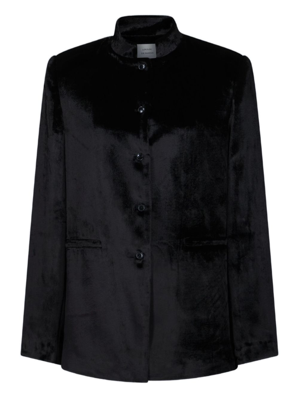 Lara stand-collar jacket Highlights - Black - Velvet texture - Stand collar - Button fastening - Welt pockets - Straight hem Imported Composition Fabric 100% Washing instructions Read Manufacturer Guidelines