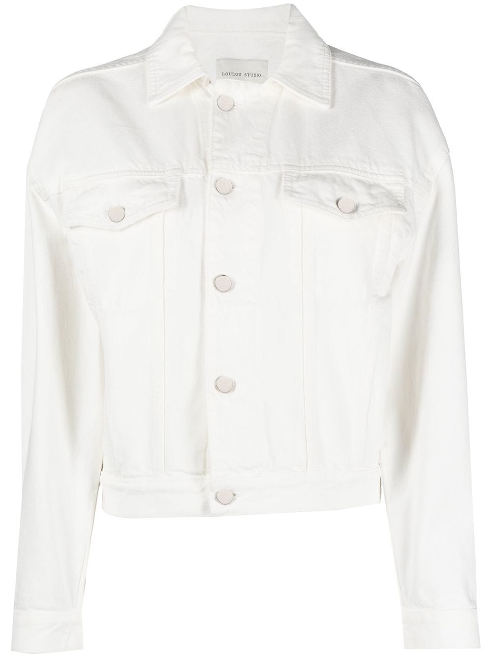 long-sleeved denim jacket Highlights - Ivory white - Organic cotton - Spread collar - Front button fastening - Chest flap pockets - Long sleeves - Buttoned cuffs - Straight hem Made in Italy Composition Organic Cotton 100% SIZE & FIT Model measurements Height 5 ft 10 in(1.77 m) Bust/Chest 35.03 in(89 cm) Hips 35.03 in(89 cm) Waist 23.62 in(60 cm) FittingInformation This piece fits true to size. We recommend you get your regular size Cut for a loose fit Made with a mid-weight non-stretch fabric