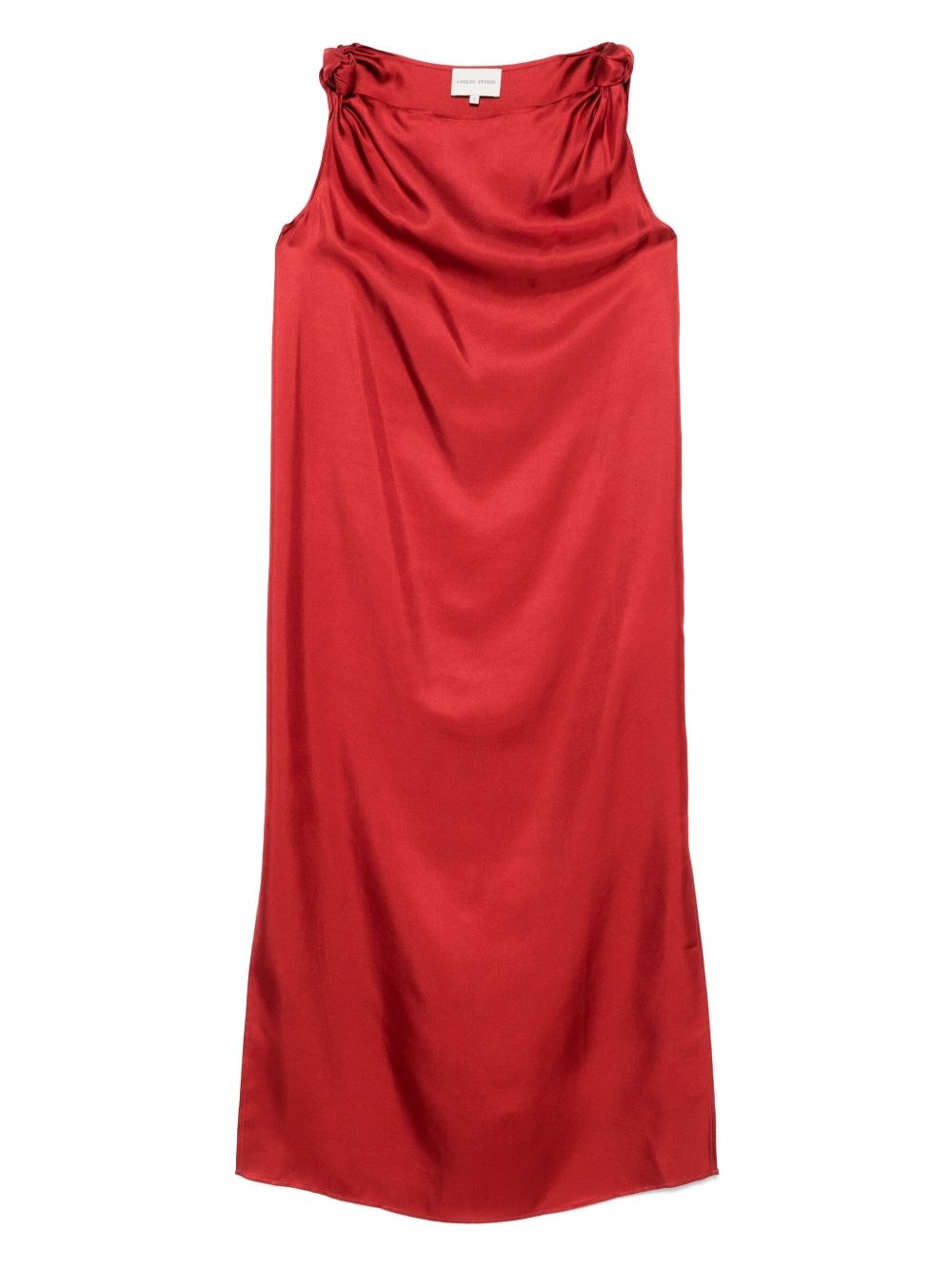 Moun knotted draped silk-twill midi dress Red