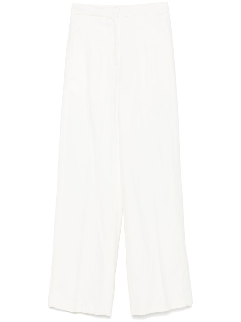 Primo trousers Highlights - White - Concealed front fastening - Two side slit pockets - Rear welt pocket - Pressed crease Imported Composition Viscose 85%, Linen/Flax 15% SIZE & FIT Model measurements Height 5 ft 11 in(1.8 m) Bust/Chest 32.67 in(83 cm) Hips 36.22 in(92 cm) Waist 24.4 in(62 cm) FittingInformation Designed for a straight-leg fit, these trousers allow for a close fit at the waist and an unrestricted, comfortable fit over the leg Made from a midweight non-stretch fabric