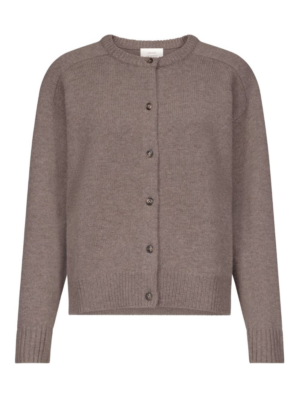 ribbed crew-neck cardigan Highlights - Brown - Wool cashmere blend - Button fastening - Ribbed cuffs - Ribbed hem - Crew neck Imported Composition Wool 90%, Cashmere 10% Washing instructions Read Manufacturer Guidelines