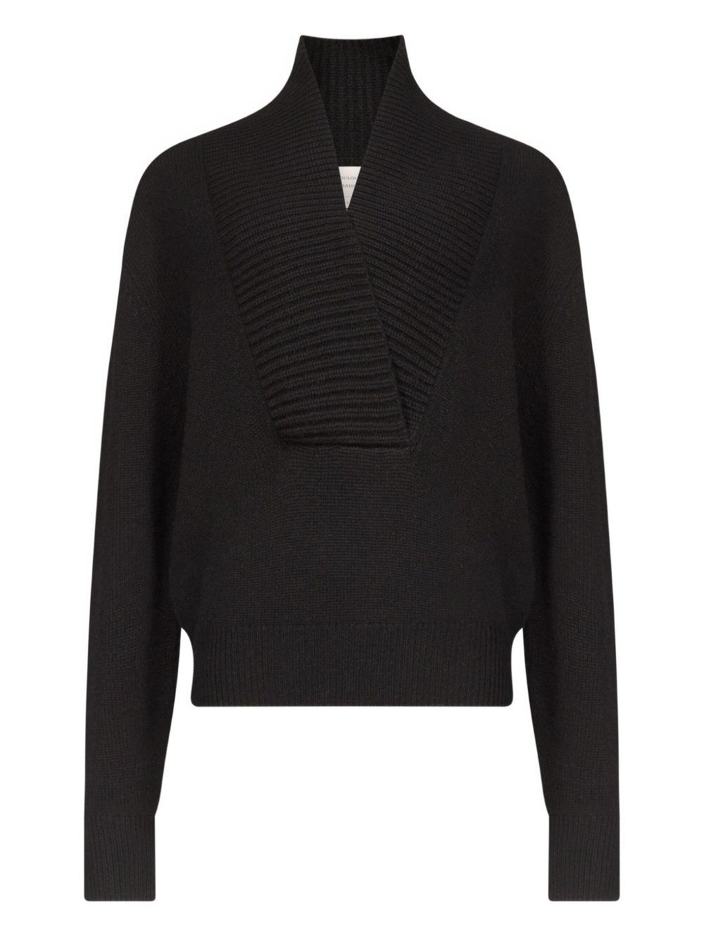 ribbed V-neck sweater Highlights - Black - V-neck - Stand collar - Ribbed cuffs - Ribbed hem Imported Composition Fabric 100% Washing instructions Read Manufacturer Guidelines