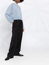 Sbiru trousers Highlights - Black - Wool - Concealed front button fastening - Flared - Pleat detailing - Two rear welt pockets Made in France Composition Outer: Virgin Wool 100% Lining: Polyester 65%, Cotton 35% SIZE & FIT Model measurements Height 5 ft 10 in(1.78 m) Bust/Chest 31.49 in(80 cm) Hips 37 in(94 cm) Waist 23.62 in(60 cm) FittingInformation This piece fits true to size. We recommend you get your regular size Designed to be fitted at the waist and hips, loose over the leg Made with a mid-weight non-stretch fabric