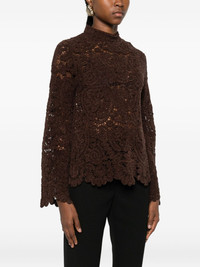 Wade lace sweater Highlights - Brown - Lace design - High neck - Long sleeves - Scalloped hem - Scalloped cuffs Imported Composition Fabric 100% SIZE & FIT Model measurements Height 5 ft 8 in(1.73 m) Bust/Chest 29.92 in(76 cm) Hips 33.07 in(84 cm) Waist 23.22 in(59 cm) Washing instructions Read Manufacturer Guidelines